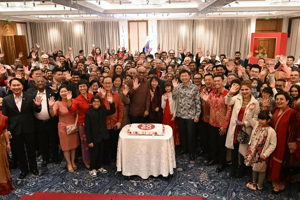 尚达曼和穆尔穆也在晚宴上,为新印建交60周年庆祝活动的标志揭幕。标志设计融入印度和新加坡国旗的颜色,以及印度国花莲花和我国国花卓锦万代兰。