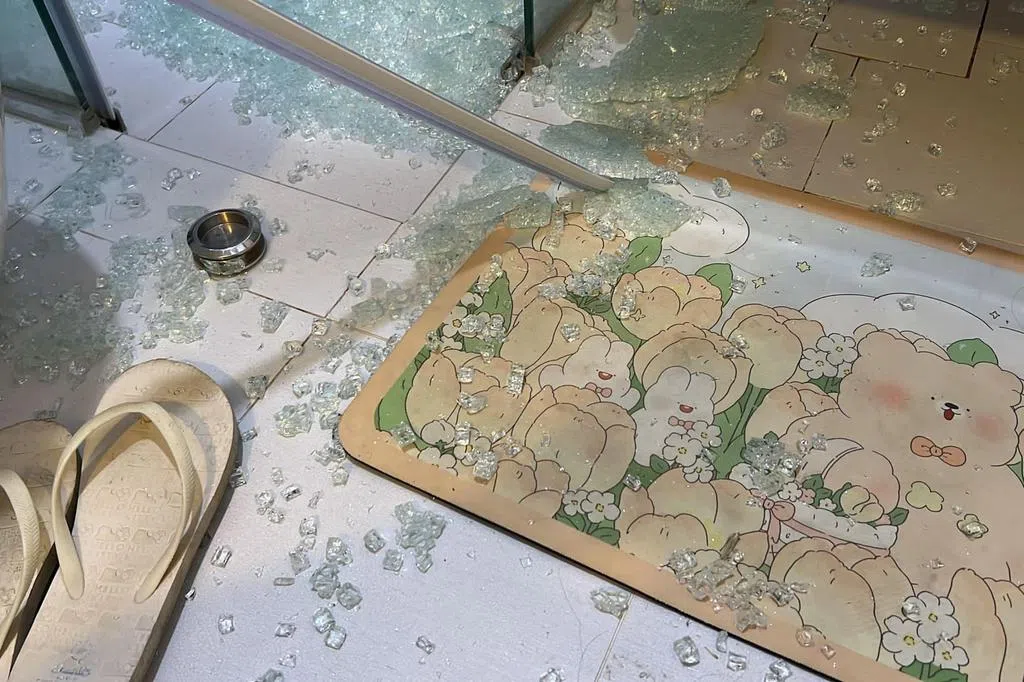 姚俊杰说:“后来我们有了孩子,也还是用主人房浴室。2023年10月的一天傍晚,突然听到一声巨响,发现是共用浴室的玻璃板爆裂。”