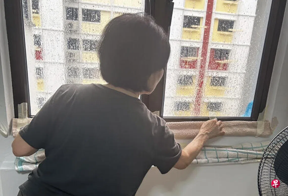 居民黎女士(68岁,家庭主妇)向《新明日报》申诉,去年11月组屋楼顶的供水系统损坏,导致大量储水从屋顶冲下。“两天后,我也发现家中房间的一个窗户不断有水渗入。”
