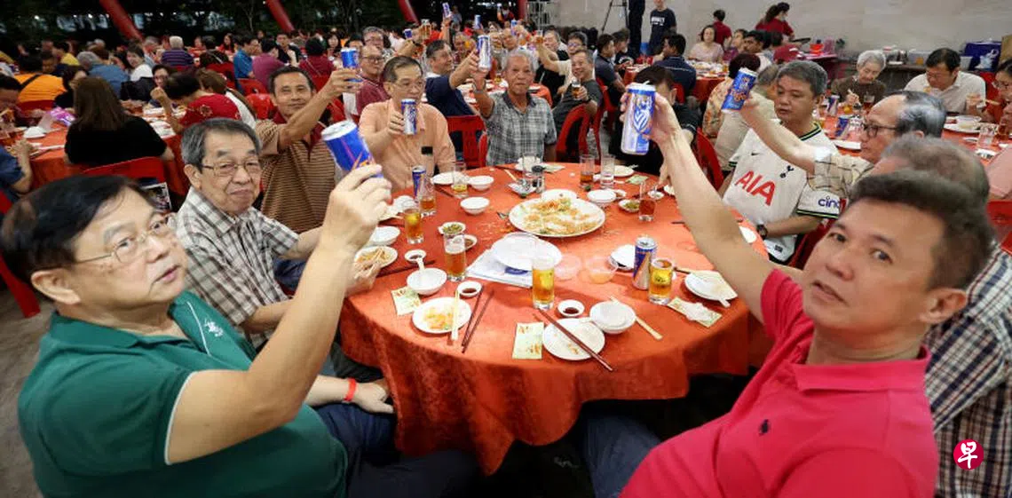 一同在发电厂共事数十年,20名老友退休后依然保持情谊,星期五晚上订了两桌席位同乐。不少人携同家眷出席,但也有两桌宾客是老同事的聚会。