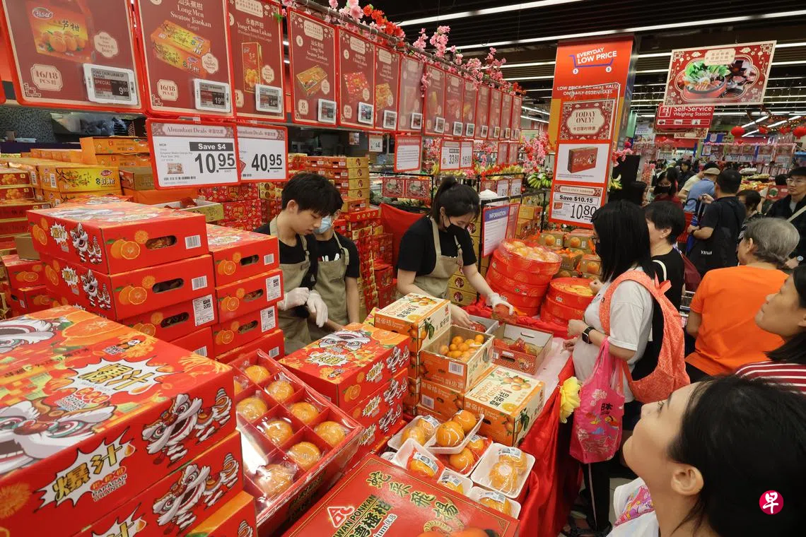 公众许珑耀 (49岁,广告业者)和妻子到超市置办年货时,也驻足挑选年柑。他说:“我们从两个星期前就开始陆续买了。感觉比去年贵了一些,但是过年自然还是要买的。”
