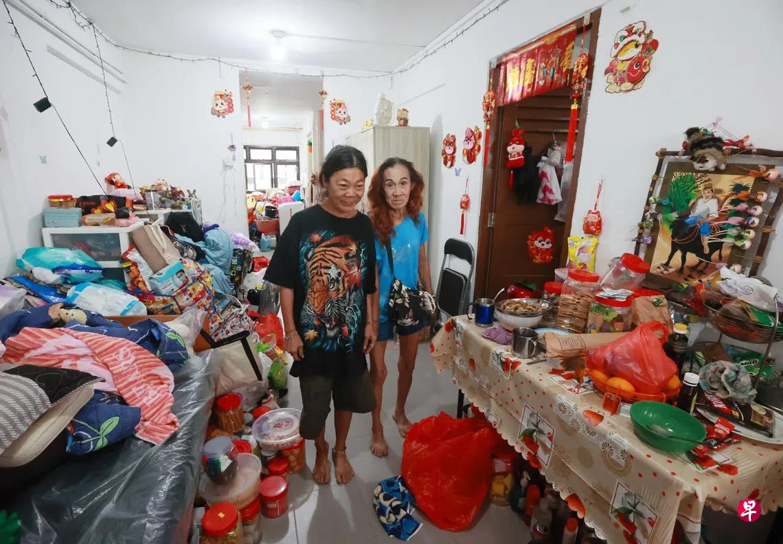 单位堆满杂物容不下身,六旬姐妹睡组屋楼下三个月,甚至还因“垃圾屋”着火被迫搬家。