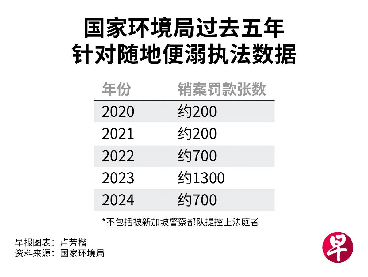 “环境局在2020年至2024年期间,每年针对公然便溺,平均开出600张销案罚款。”