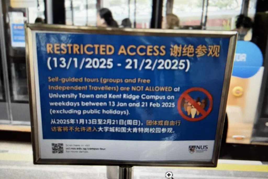 为更好地管控农历新年前后旅游旺季游客流量激增,国大早前宣布,从1月13日至2月21日期间,谢绝旅游团或自由行旅客进入校园参观。不过,校方会在这段期间由学生大使( Student Ambassadors )提供免费导览服务,开放让新加坡旅游局认证的旅行社和导游上网预约,每次导览可接待20人至40人,时长一小时,最迟到访三天前预订。