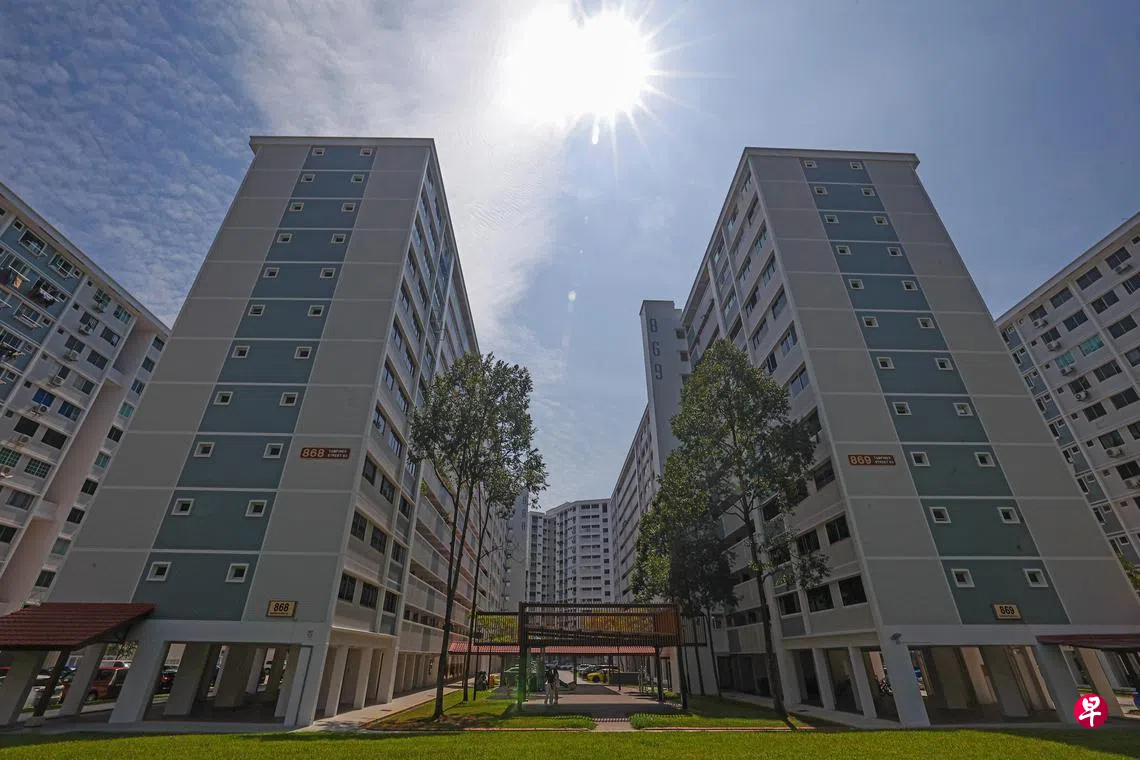 淡滨尼8道的868和869座组屋在隔热涂料试点计划涵盖的范围内。《联合早报》走访那里时,发现多数受访居民并不了解外墙的新油漆有什么特别之处,但确实感觉到居住环境没那么闷热了。