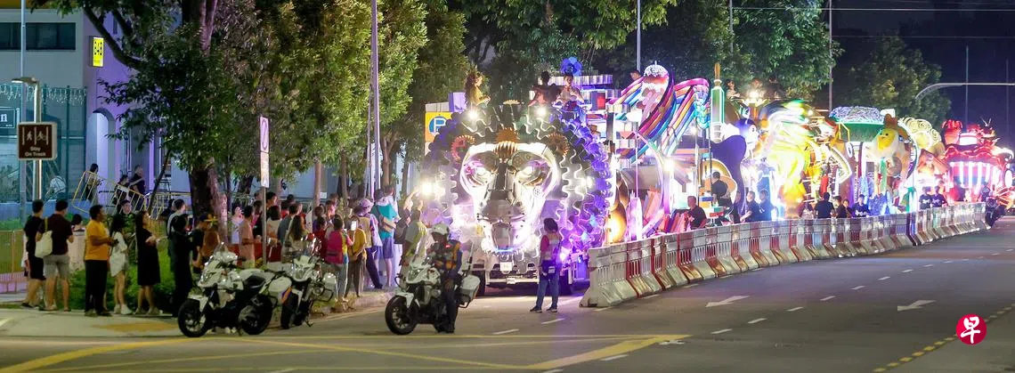 今年的花车比往年更大、更亮。九辆妆艺花车和一组12米长的社区花车队伍从麦波申民众俱乐部前出发,途经马林百列社区包括蒙巴登、芽笼士乃、如切、马林百列、景万岸—菜市和布莱德岭。