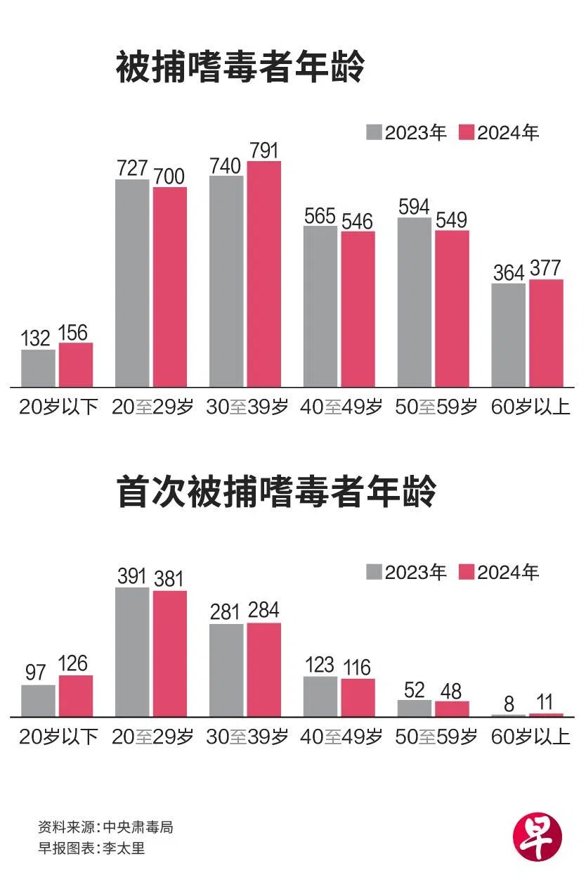 中央肃毒局星期三(2月12日)发布2024年全年数据时透露,去年被捕的最年轻嗜毒者只有13岁,这比心理卫生学院“2022年健康及生活方式”调查显示,首次接触毒品平均年龄为15.9岁还要低。根据此前报道,当局在去年2月逮捕一名14岁和两名13岁少女,三人承认曾一同滥用毒品。