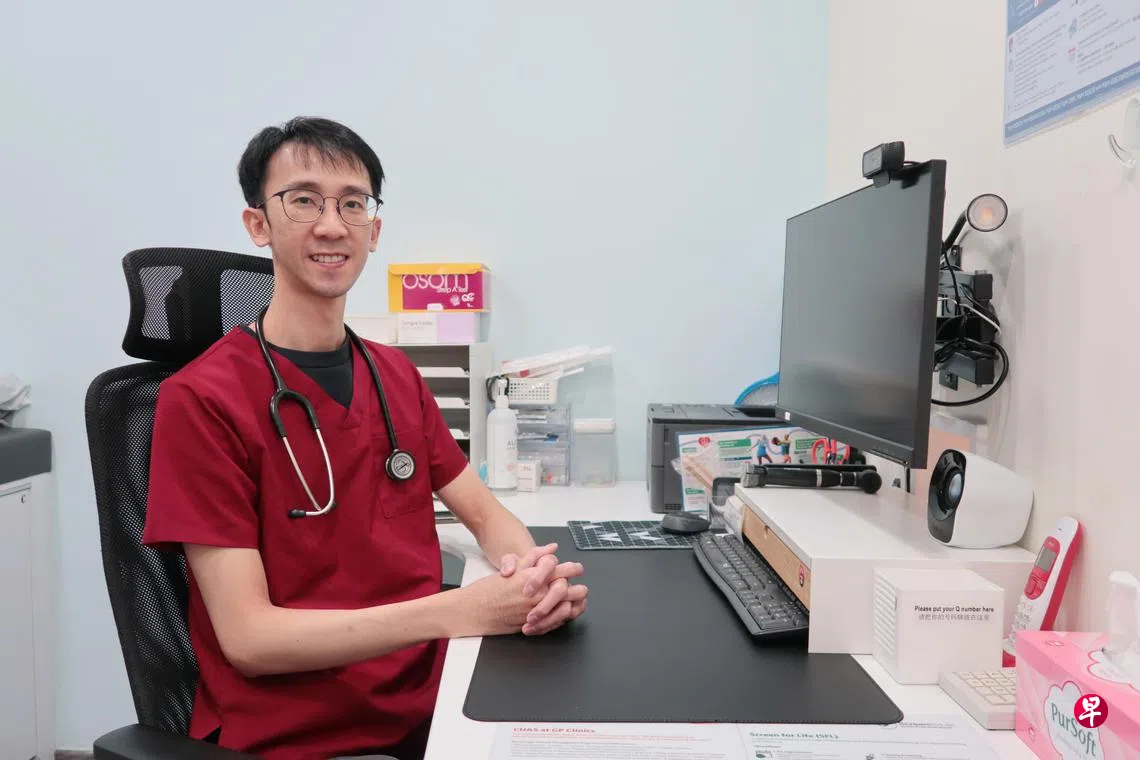 他在工作日休息于直落布兰雅的康邻医疗(HeartlandHealth)诊所受访。在这里,陈威杰(31岁)上午8时到下午1时上早班,傍晚6时到晚上11时上晚班,每天为大约50名病患看诊。中间休息的几个小时,他一般会睡上一觉或去健身房。