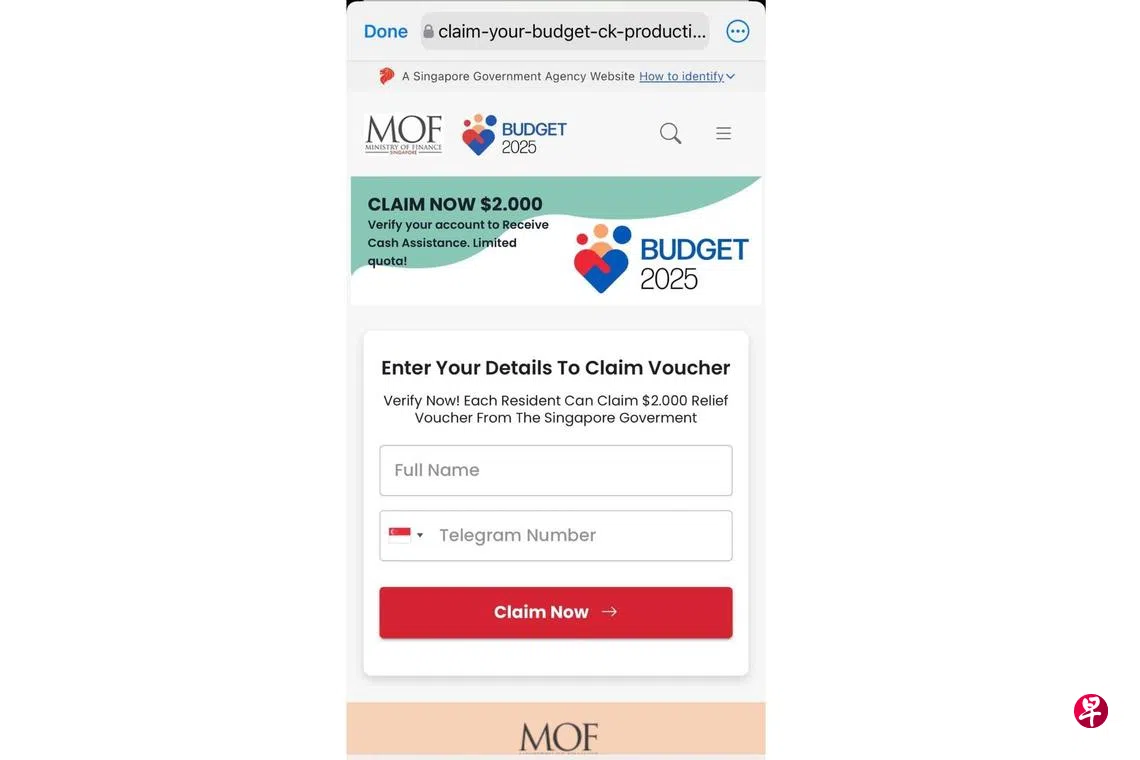 总理兼财政部长黄循财将在星期二(2月18日)下午宣布2025年财政预算,但骗子却抢先“出击”,在聊天应用群组内发送假预算案网站链接,声称填写资料完成验证就能获得2000元。