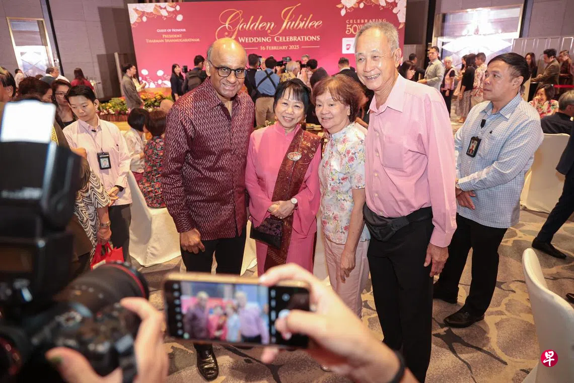 活动主宾尚达曼总统和夫人珍一藤木,以及马善高在仪式上为202对结婚超过50年的夫妇,颁发金禧纪念注册证书以及纪念币等礼物。