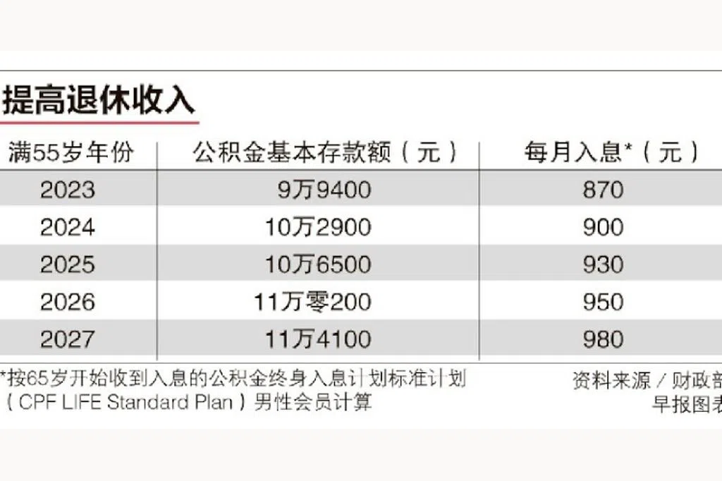 从2026年1月开始,55岁以上至65岁雇员,他们的雇主得多支付0.5个百分点的公积金缴交率,不过按照过渡性公积金抵消计划(CPF Transition Offset),政府承担一半的费用后,雇主只须多支付0.25个百分点的缴交率。