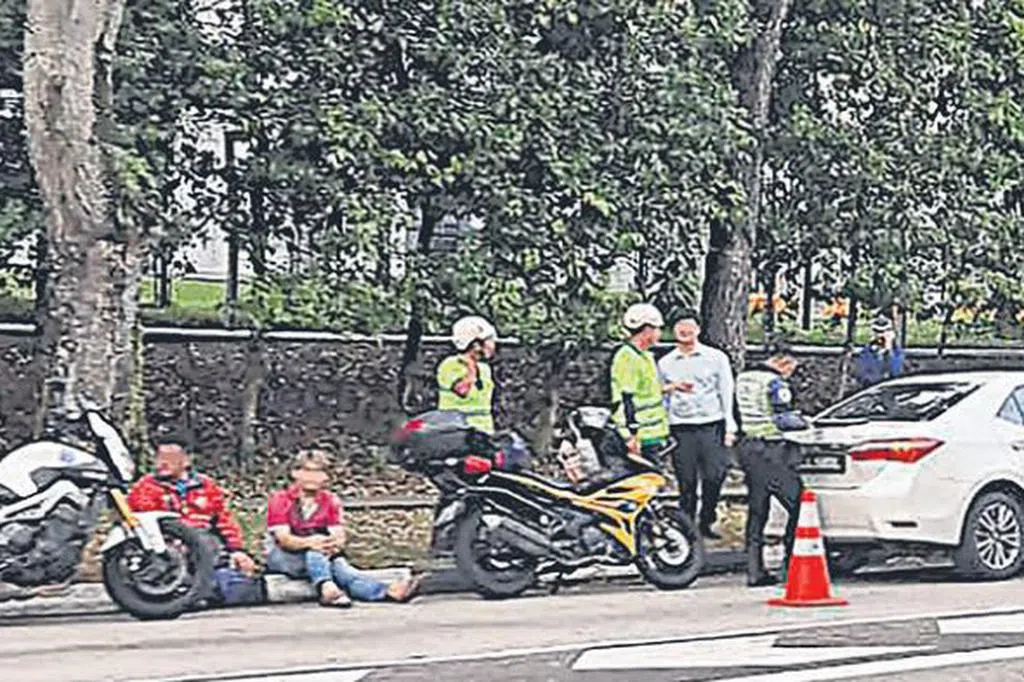 岂料,当罗厘切换到右侧车道时,一辆电单车刚好驶过,相信是发现罗厘“逼近”而吓坏,紧急刹车,结果后方另一辆电单车来不及闪避,追尾相撞。