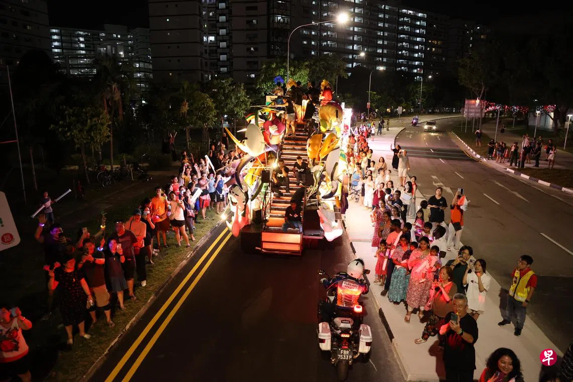 “妆艺在邻里”活动,星期五(2月21日)来到淡滨尼。花车队伍晚间7时30分开始,从淡滨尼中心公园(Tampines Central Park)出发,环绕整个淡滨尼市镇,将缤纷的花车带到居民面前。