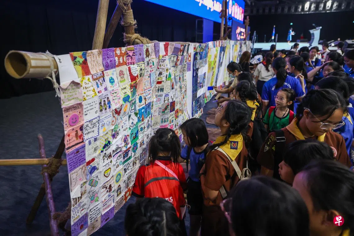 新加坡女童军协会通过收集1000块手写布艺的寄语,完成巨型布艺壁画,壁画也获载入新加坡纪录大全。