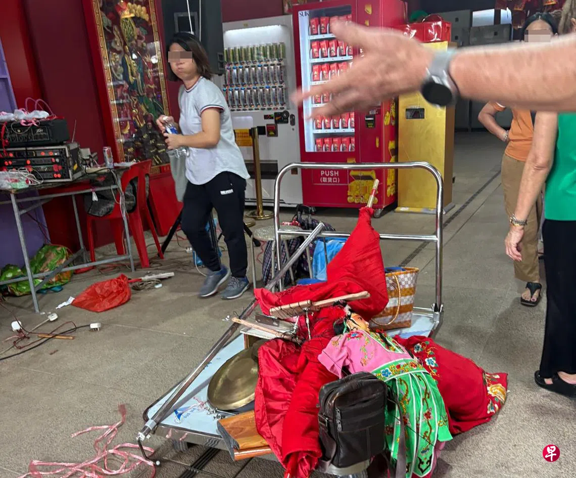 神庙请木偶戏团,原本两个月档期要减半,女团员与庙方为此事起争执,一方指自己遭“压颈”,另一方反驳称只是不给她冲上来,惊动警方到场,最后戏团当天被请走。