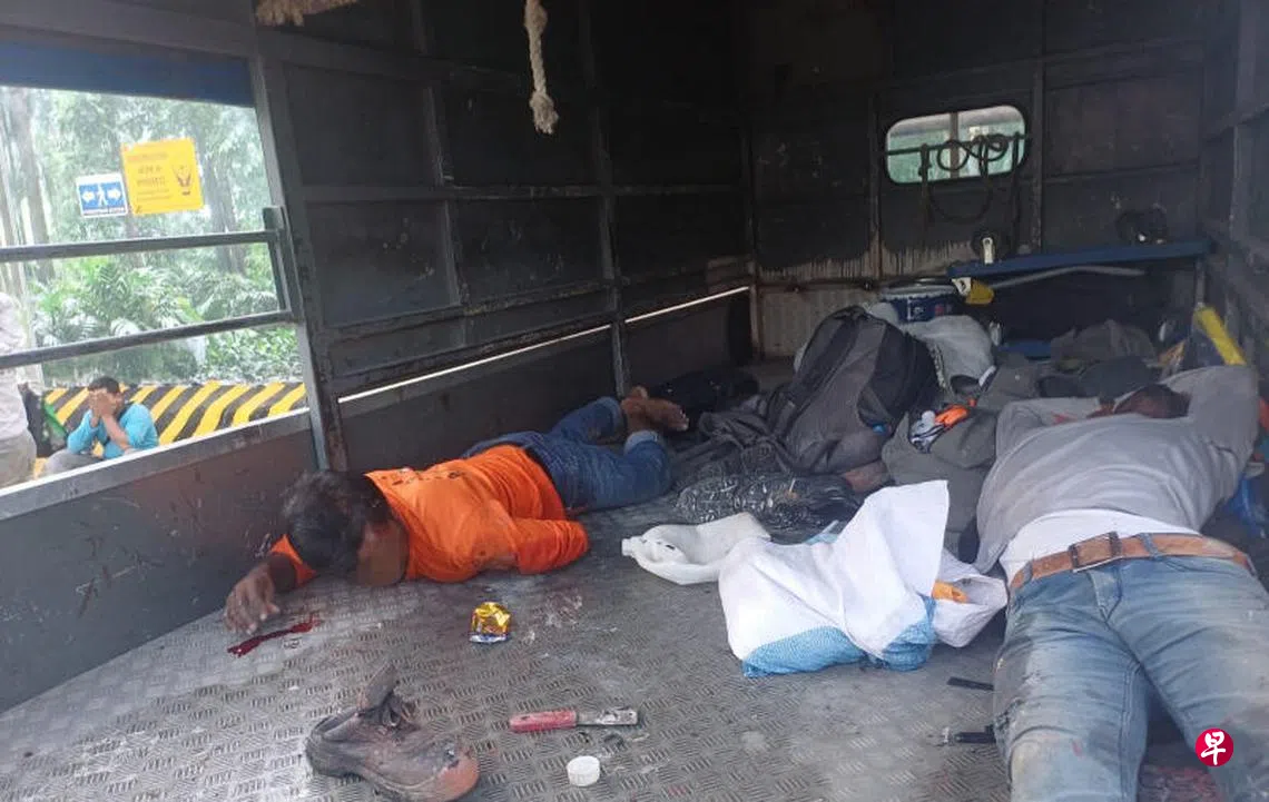 根据读者提供的照片,两名坐在车斗的客工伤势较重,其中一人趴着,头部流血,身边还有大摊血迹;另一人则倒卧在附近,袖子上染血。
