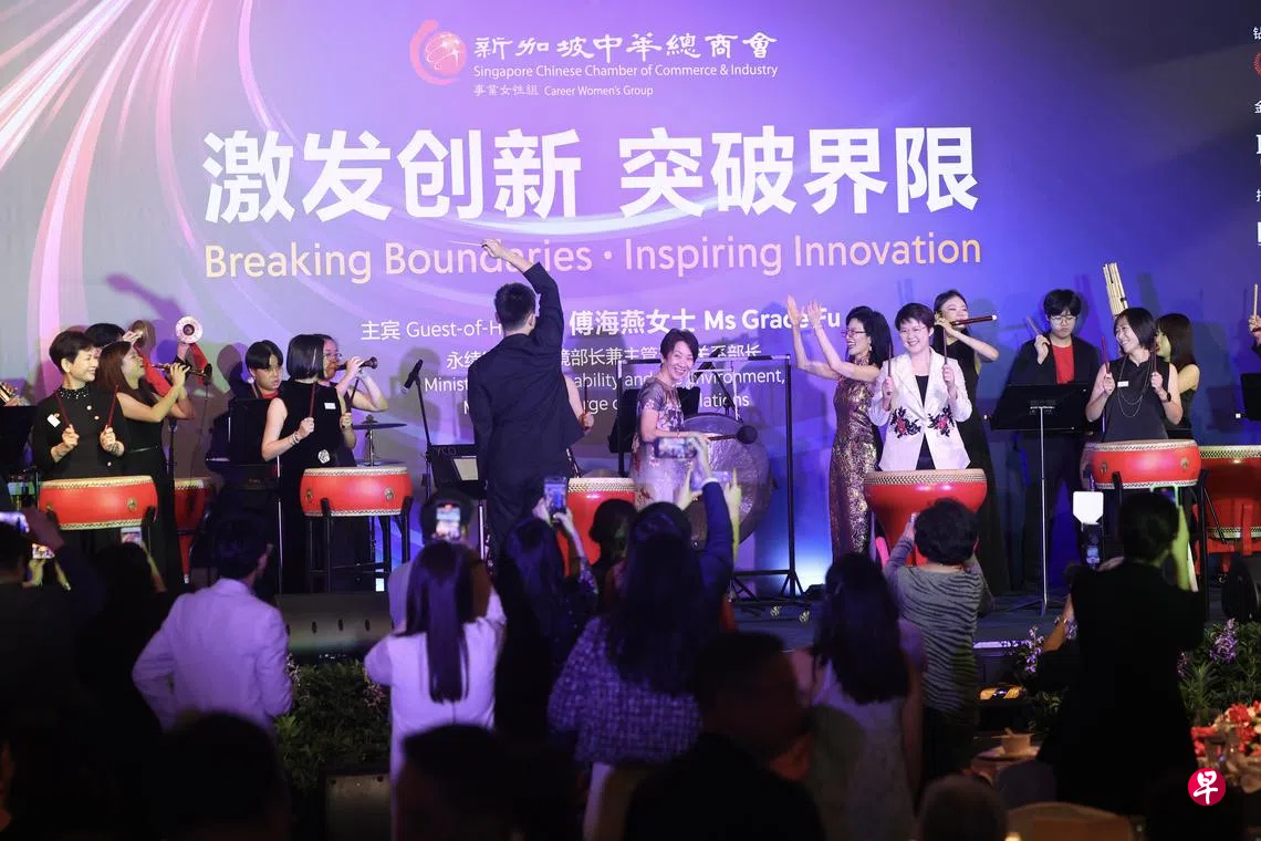永续发展与环境部长傅海燕星期天(3月2日)在新加坡中华总商会主办的2025年国际三八妇女节论坛与晚宴上致词时,谈到国际事态发展对两性平等带来的挑战。