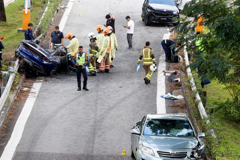上个星期天(3月2日)下午约2时10分,尼诰大道通往加冷—巴耶利峇快速公路(KPE)的支路上,一辆保时捷跑车连撞四车后,侧翻起火燃烧,开车的男子受困车中,不幸被活活烧死。
