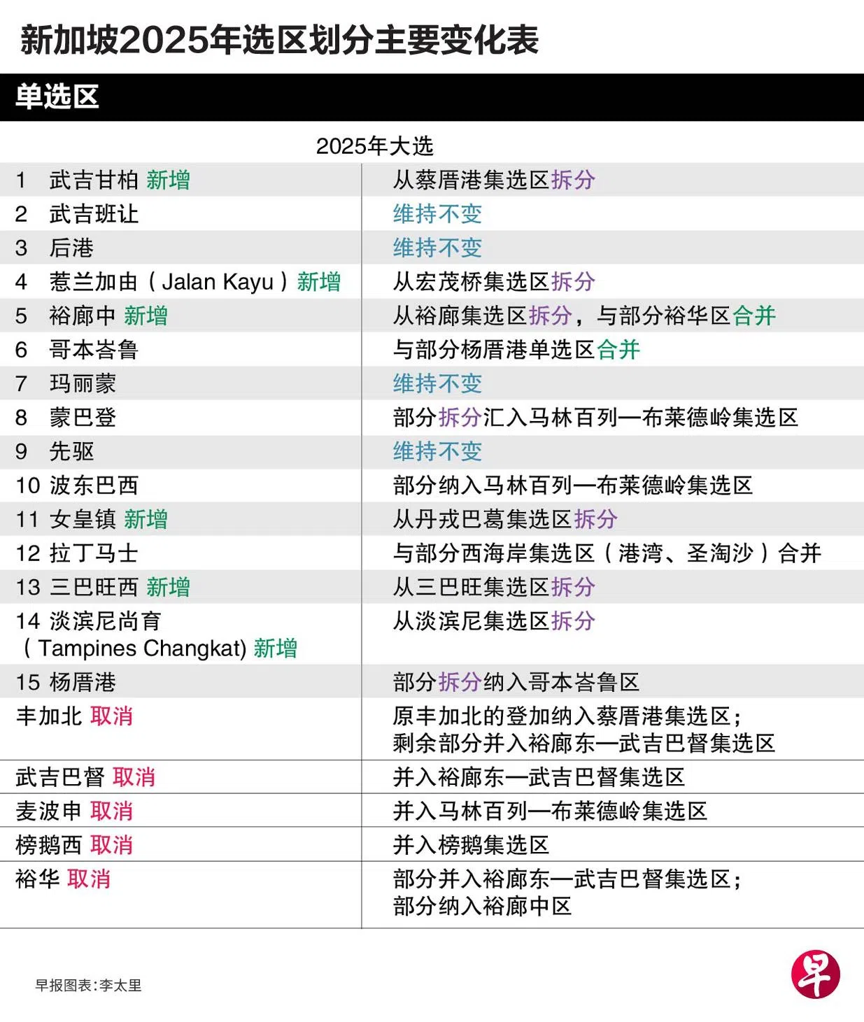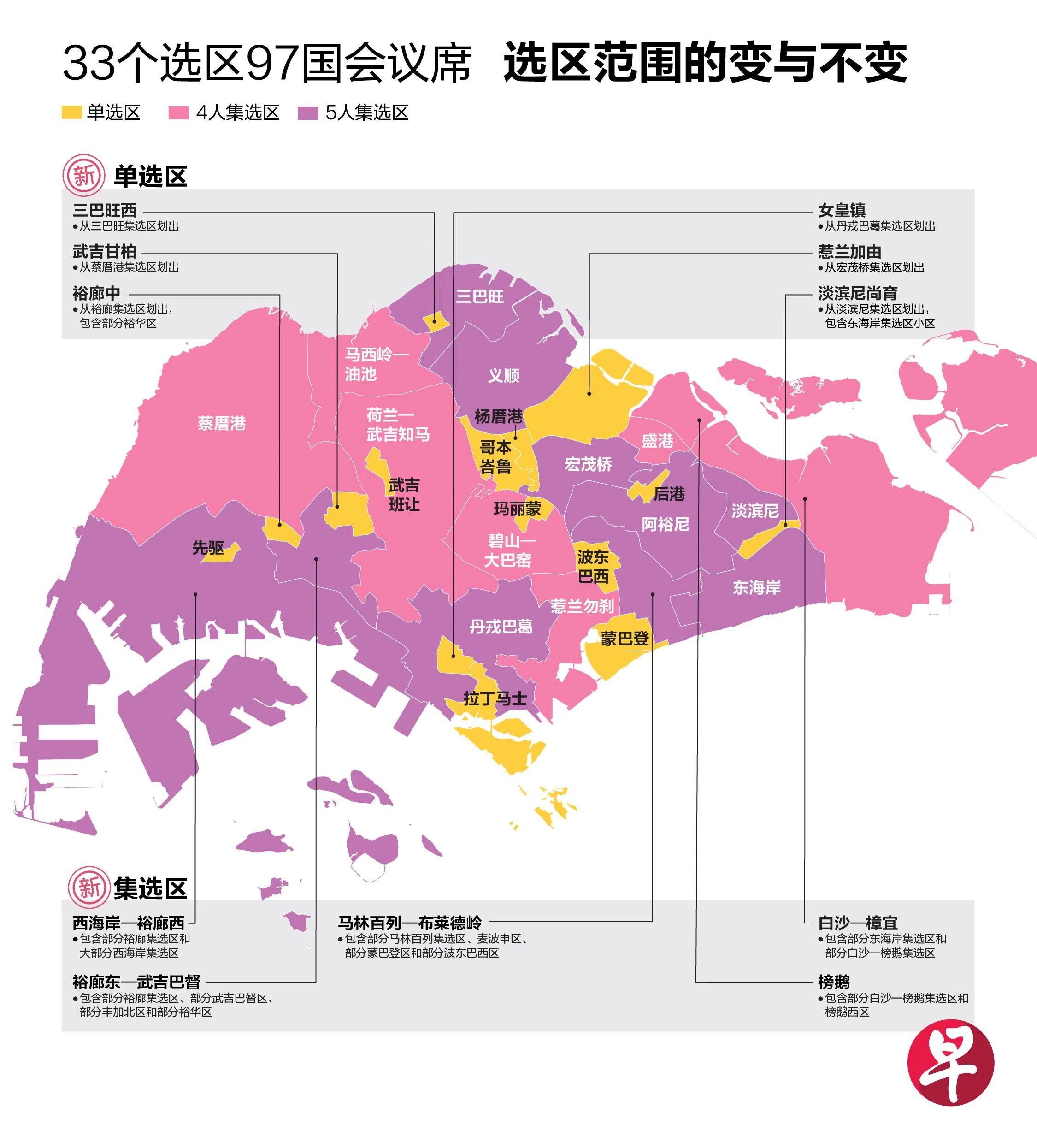 单选区和集选区总数虽然分别只增加一个,但超过三分之二的选区都有所调整,包括被视为热点区的西海岸、东海岸、马林百列和淡滨尼集选区。