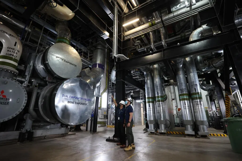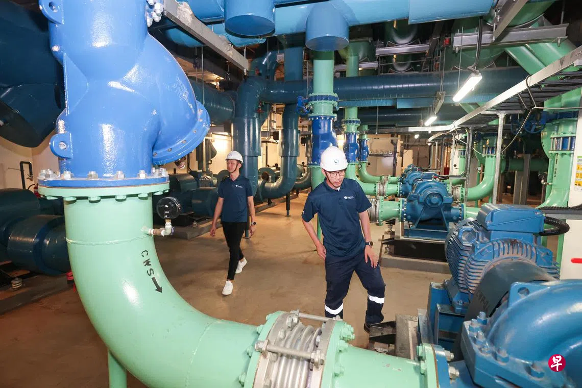 其中,世纪广场、淡滨尼天地和Tampines 1,将是区域供冷网络的三大供冷站。新能源集团在这三处供冷站加装了泵设备,使制冷机提供的冷冻水不仅满足自身建筑需求,还可通过新增泵设备和地下管道输送到其他建筑。其中,淡滨尼天地制冷容量占整个网络的50%。