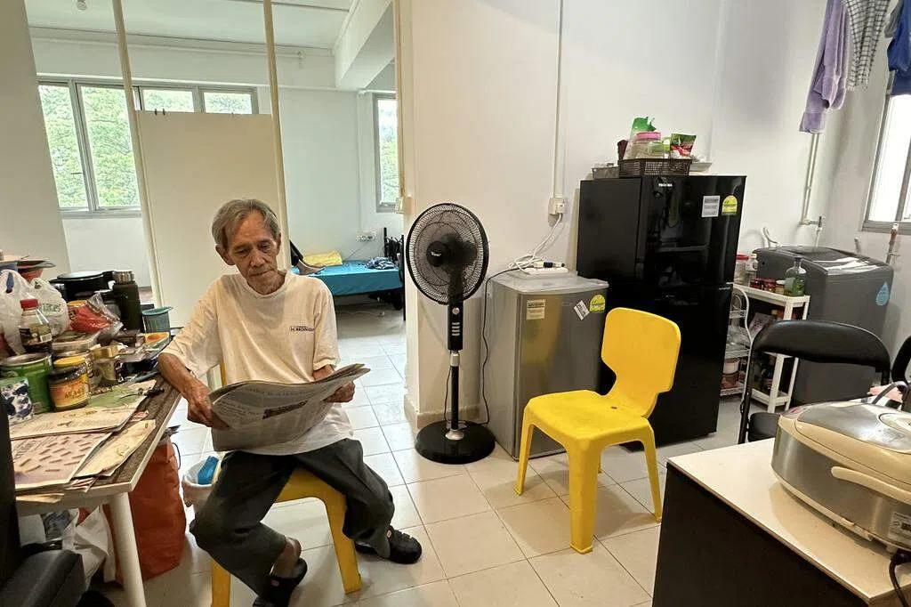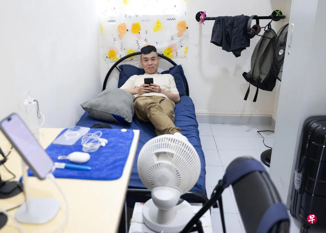 其中一名住户是42岁的洗衣店员工陈永福,他在去年8月搬入这个单房共享设施。