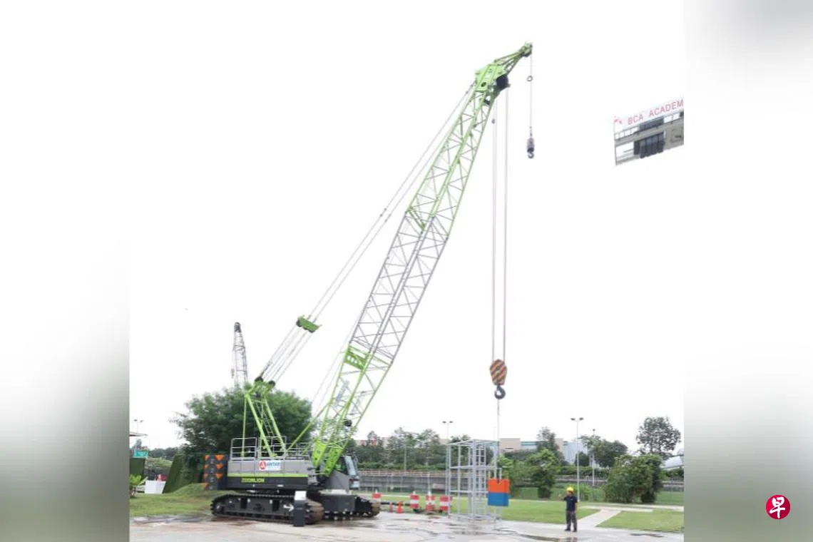 除了相互分享绿色建筑技术和经验,交流会也展示数种节能建筑机械与器材,如电动挖掘机、电动装载机和电池储能系统等。其中一台电动履带式起重机(crawler crane)是本地首台,去年8月引进新加坡后,已在建筑工地投入使用。