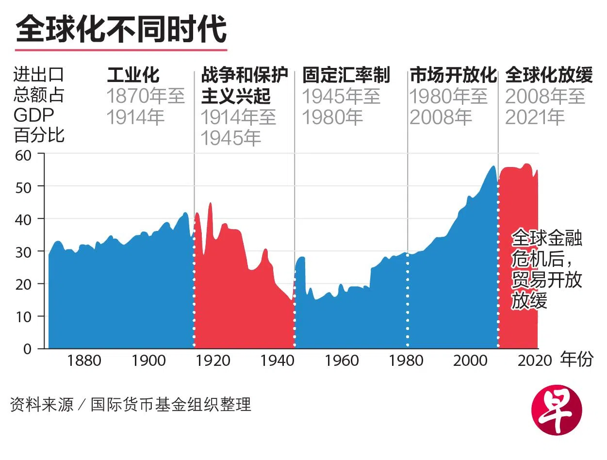李资政形容,当年的全球金融危机是个拐点,而当前可能正迎来另一个转折点。面对日益紧张的地缘局势和政策不确定性,人们已不能再假设贸易必然会继续与全球GDP同步增长;一旦贸易在全球GDP中的占比开始下降,将带来深远的经济和战略影响。