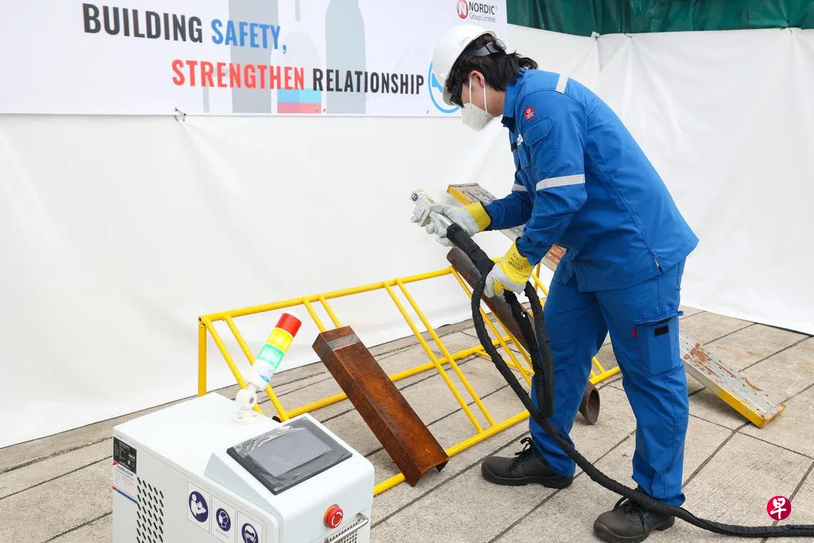 此外,公司从今年2月起借助激光科技提高除锈效率,一名员工如今可在八小时内为280个铁片除锈。以往,要清除200个铁片的锈迹,需要两名员工耗时八小时。
