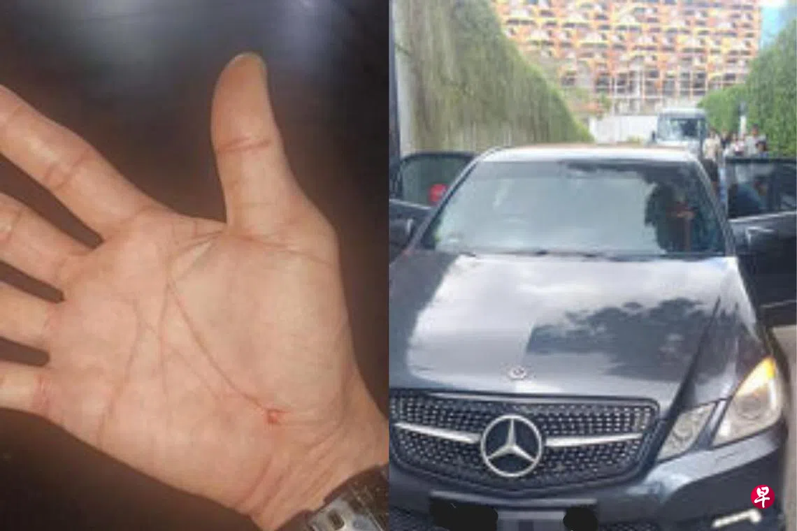 保安员胡瑞泰(57岁)联系《新明日报》说,他上星期六(3月22日)在车辆接送点工作时,一名开着马赛地轿车的男子坚持在非指定地点停车。他上前沟通,岂料期间对方动手将他推倒在地,导致他手掌擦伤和肌肉损伤。