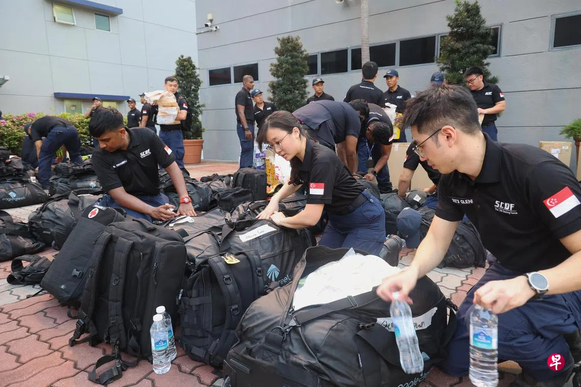 新加坡民防部队派出80名“狮心行动”队员到缅甸首都内比都,协助大地震灾区的搜救和灾害援助工作。