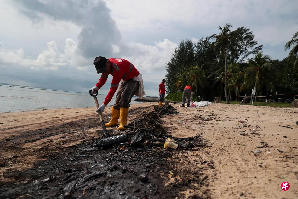 当局正在清理樟宜海滩和白沙海滩的油污,大部分的清理工作预料将在接下来几天完成。其间,受影响地区将拉起封锁线,暂时禁止公众进入。