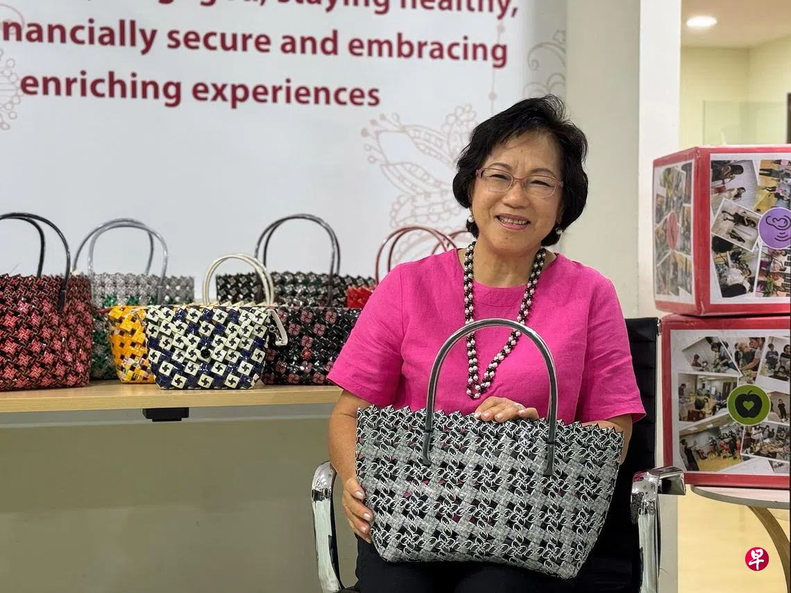 王月梅多年来为妇女非盈利机构开办手艺课程,其中最特别的课程之一,是用塑料包装作为材料,制作手工环保包包。