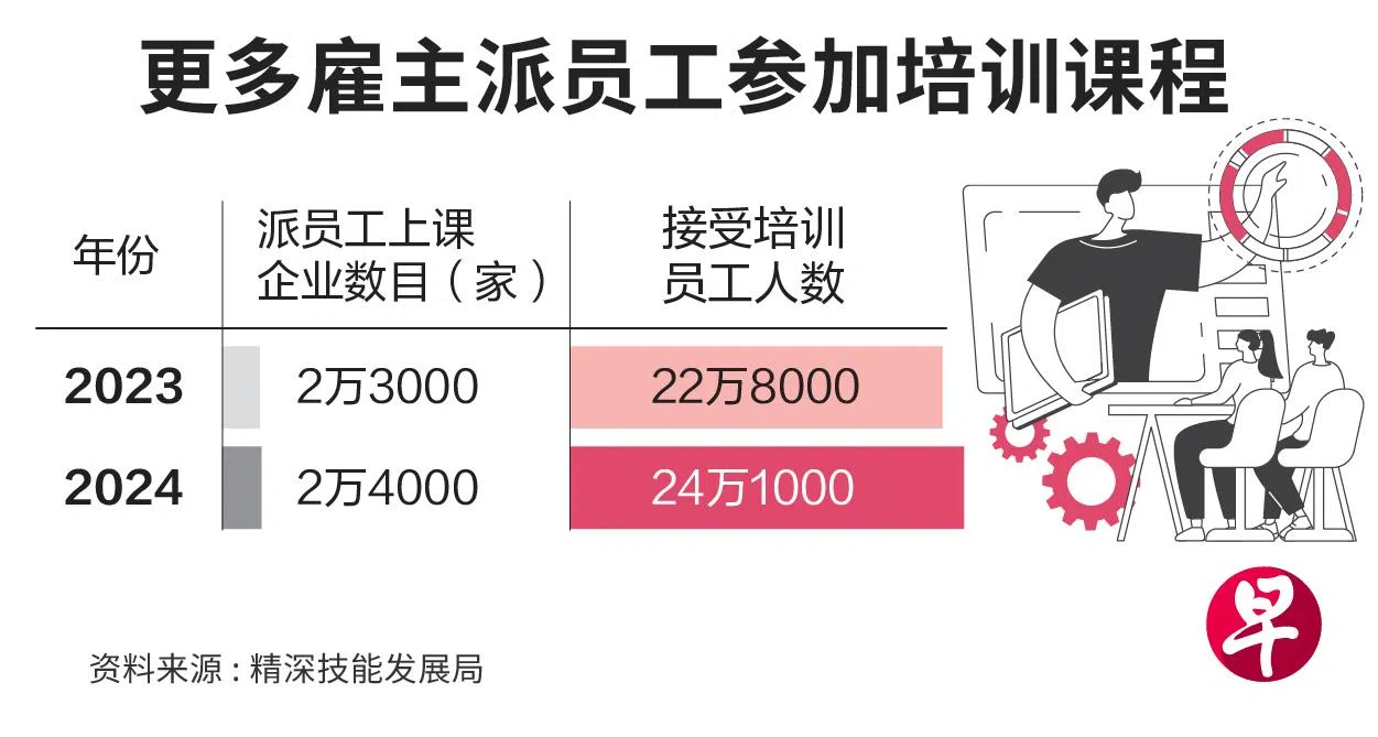 去年,有2万4000家企业派员工上精深局支持的培训课程,比2023年的约2万3000家多。其中高达95%是中小企业。获雇主资助上课的员工人数,也从22万8000人增至24万1000人。