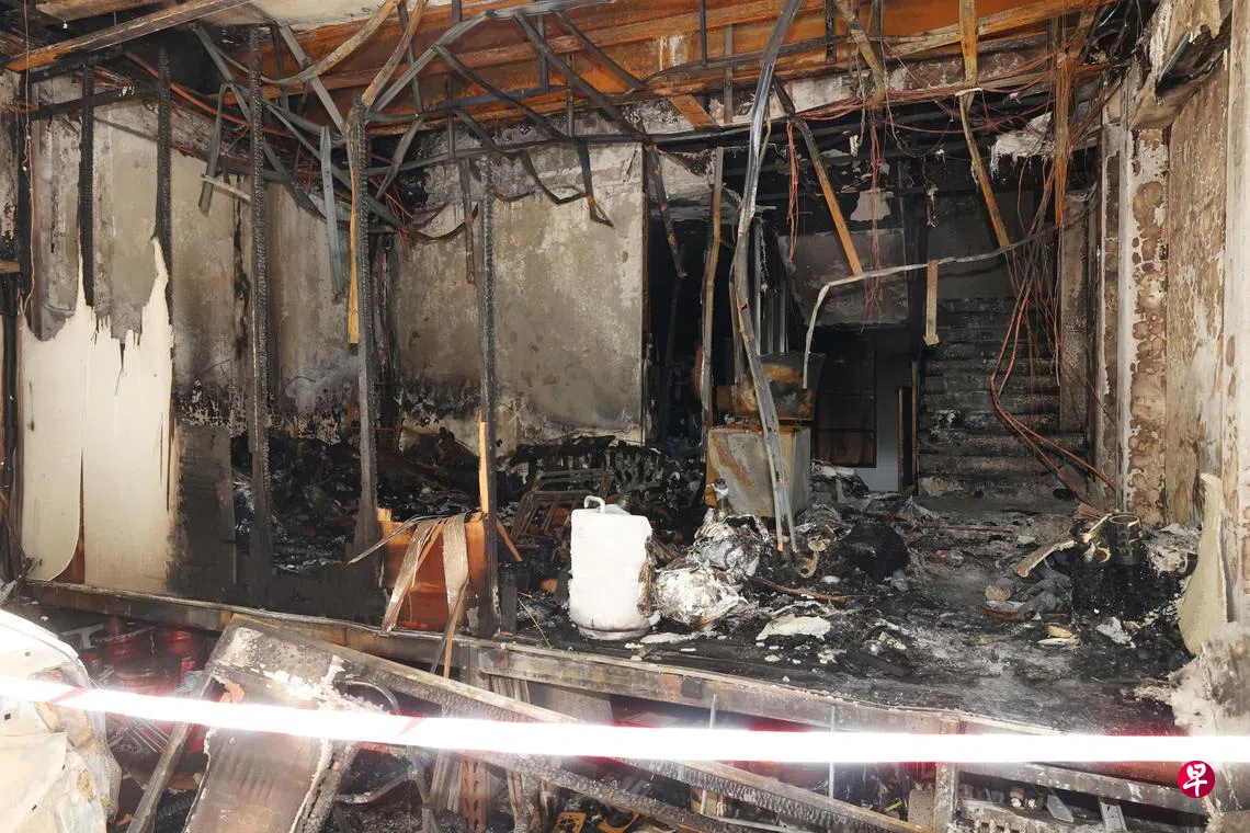 火患发生时,建筑物的二三楼冒出滚滚浓烟,店屋的后方也一度冒出大火,受损情况非常严重,冷气机都已烧剩铁架。记者到前门查看时,发现地面层的面积窄小,没有设施或家具,几乎不受火患的影响。