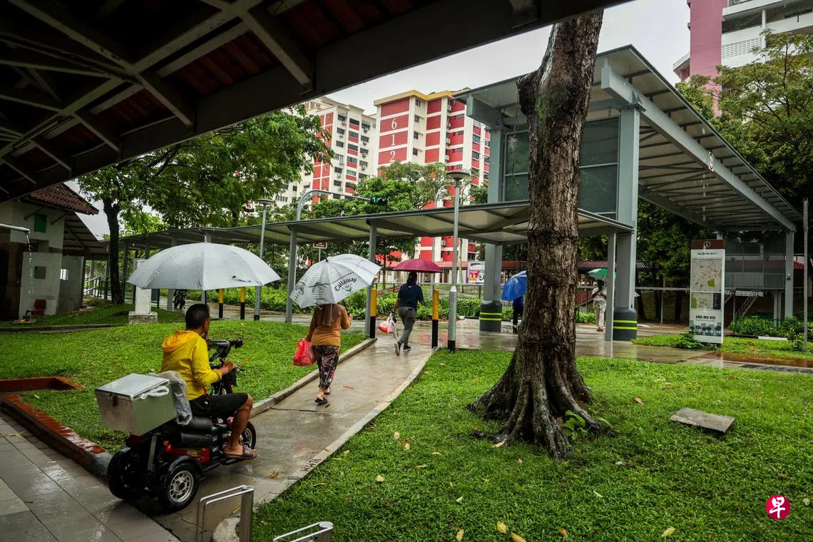 住在第609座组屋的郑美英(62岁,退休)说:“这一带年长者较多。如果能把有盖走道延伸至第631座咖啡店,进而连接到小贩中心,会更加方便。我虽然随身带伞,但因为距离不远,通常会加快脚步,不会特别撑伞。”