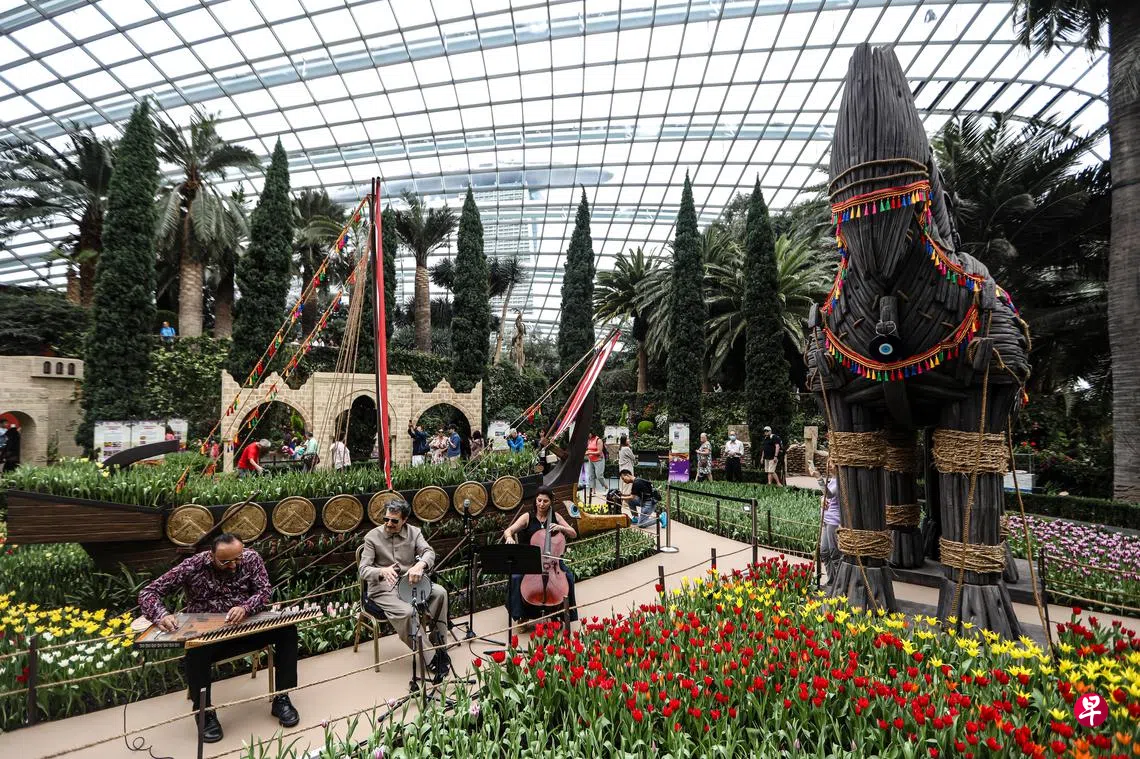 一年一度的“梦幻郁金香”展回归滨海湾花园,今年以土耳其文化为主题,公众不仅能欣赏超过6万株郁金香,还可近距离探索特洛伊木马、哥贝克力石阵等土耳其标志性历史元素,感受土耳其千年文明的魅力。