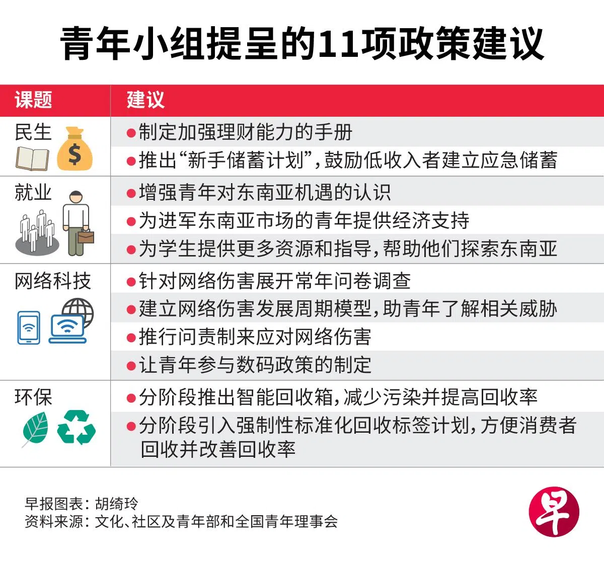 建议涵盖提升青年的财务韧性和知识、协助他们探索在东南亚发展的机会和资源获取、加深了解和应对网络伤害,以及改善环保回收率等。