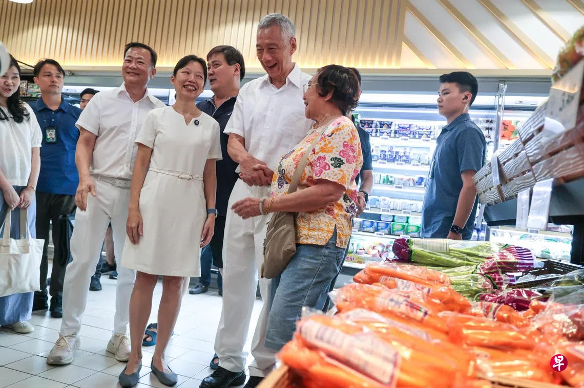 国务资政李显龙星期天(4月20日)傍晚,率领将捍卫宏茂桥集选区的人民行动党团队,走访区内的购物中心,同居民交流。