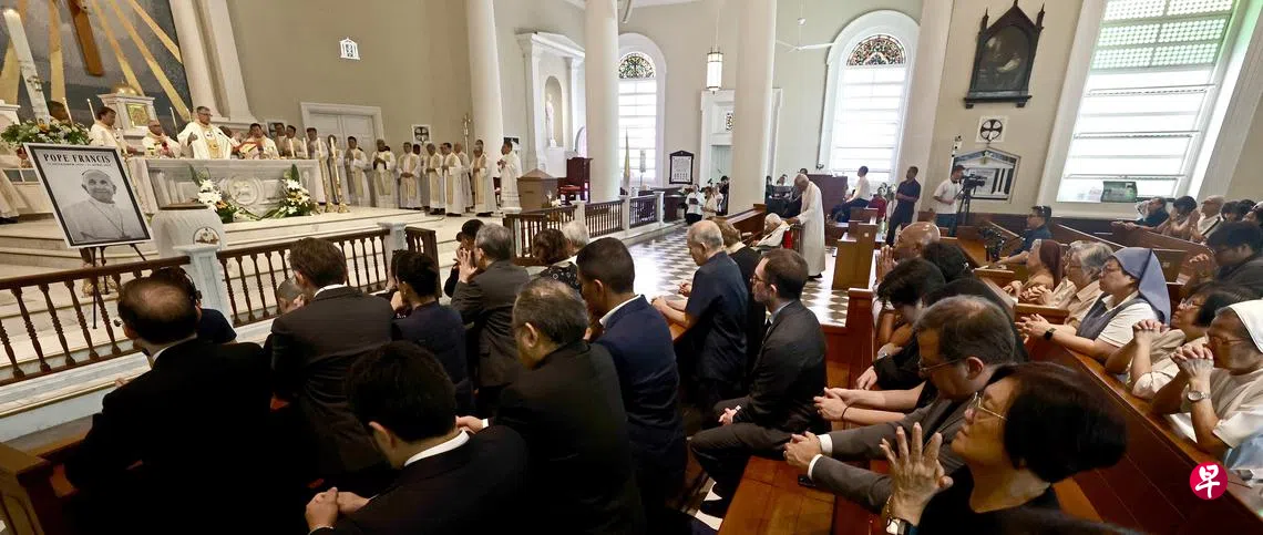 罗马天主教教宗方济各星期一(4月21日)与世长辞,天主教新加坡总教区在本地历史最悠久的天主教堂举办追思弥撒,近1000人出席。