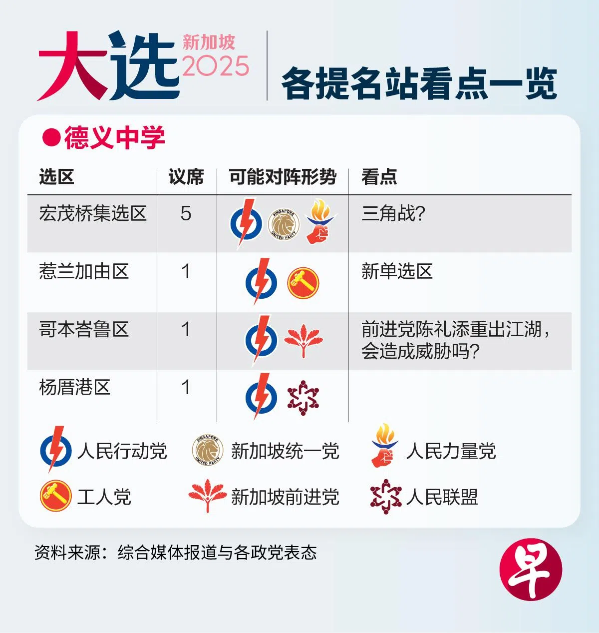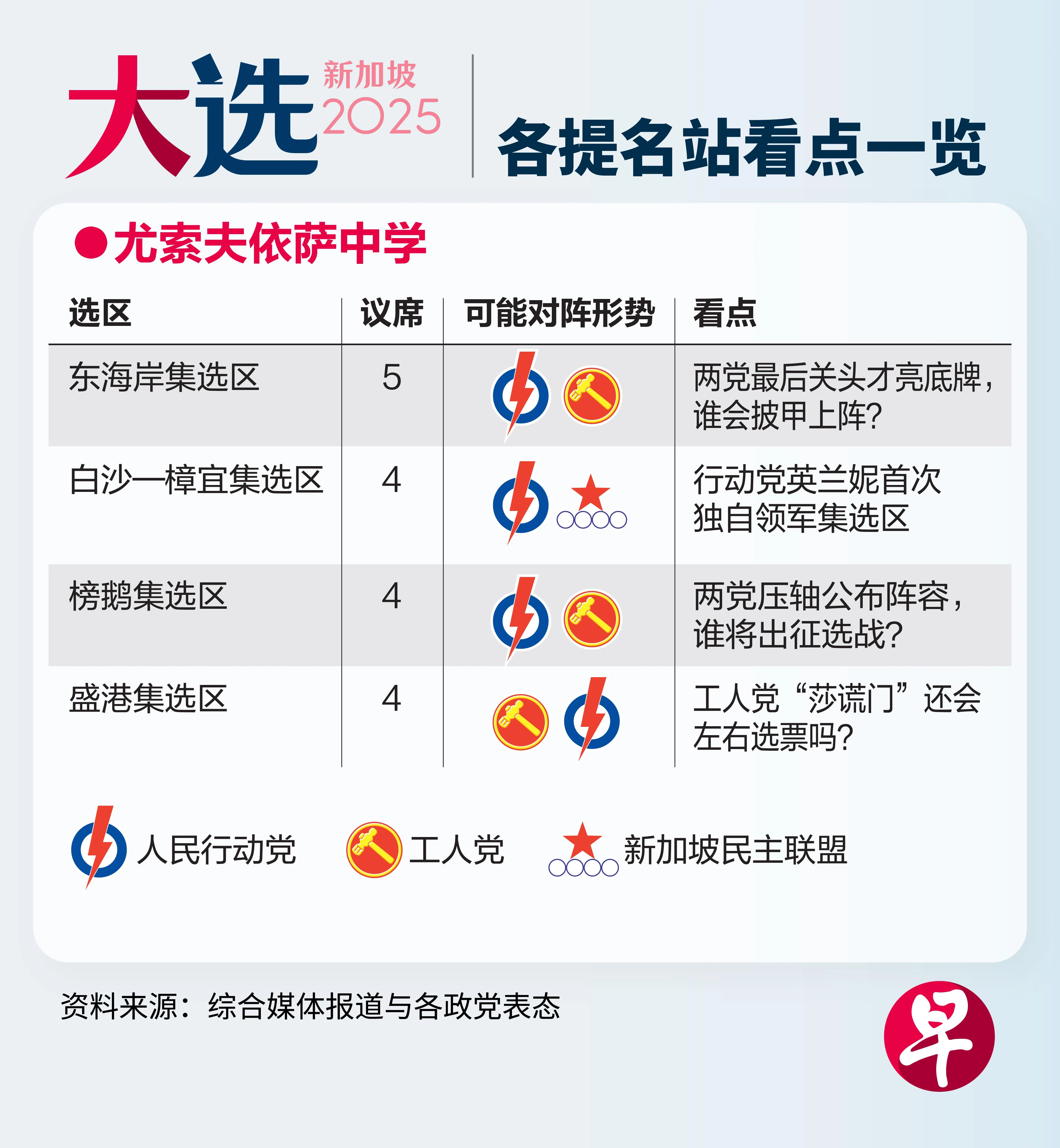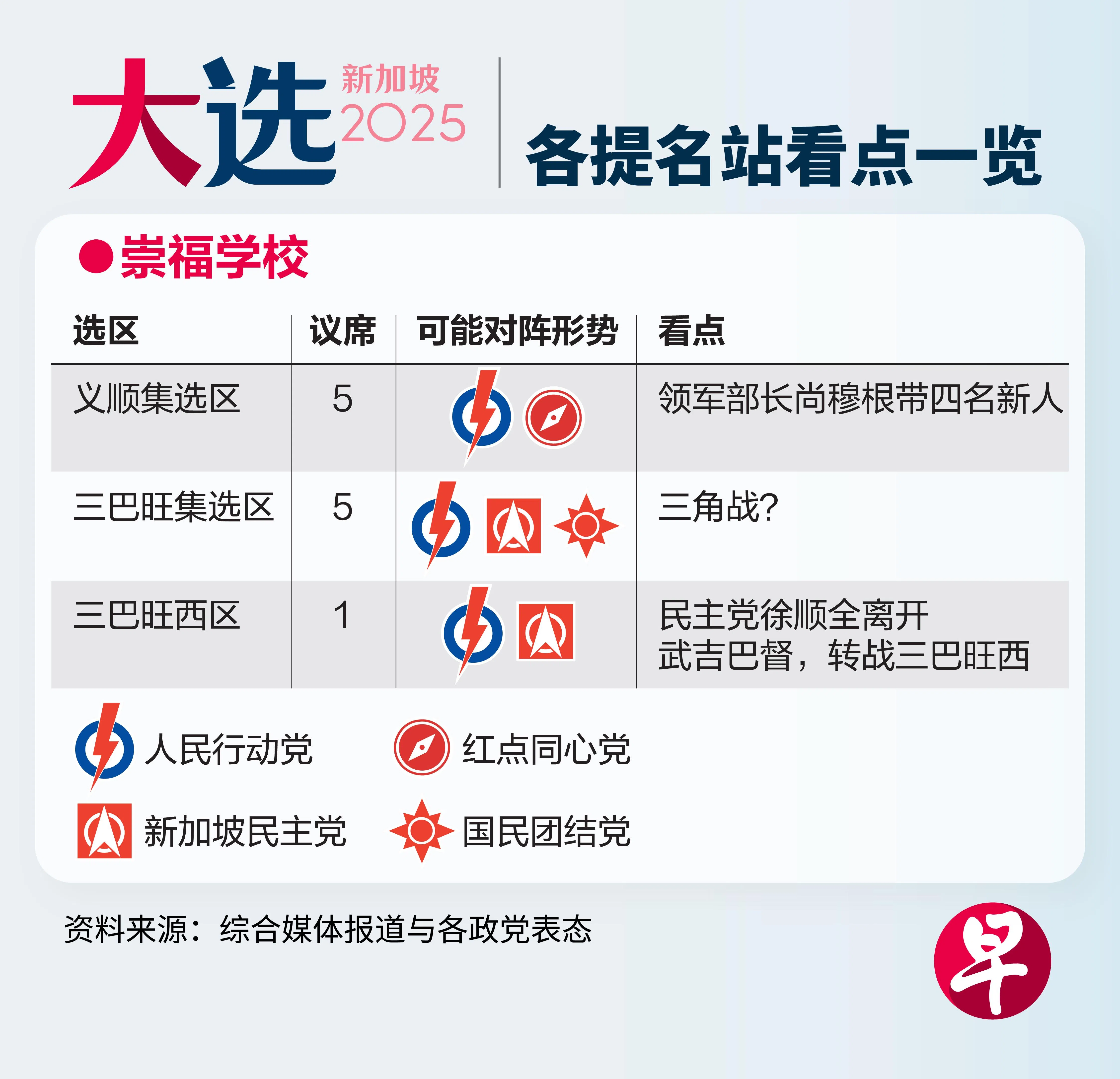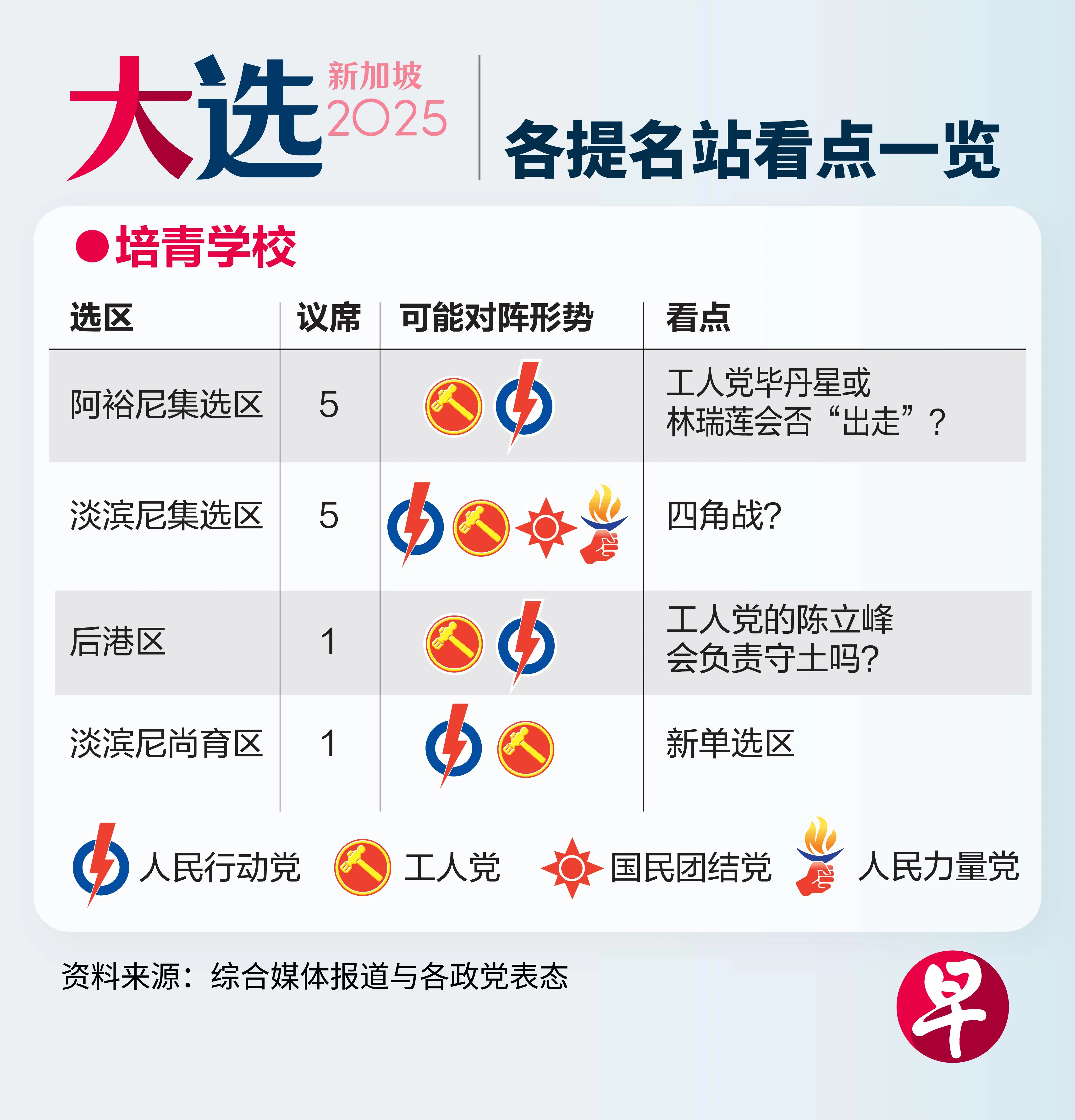 《联合早报》整理本届大选九个提名站的重点战区与看点,带你一览选情最前线。