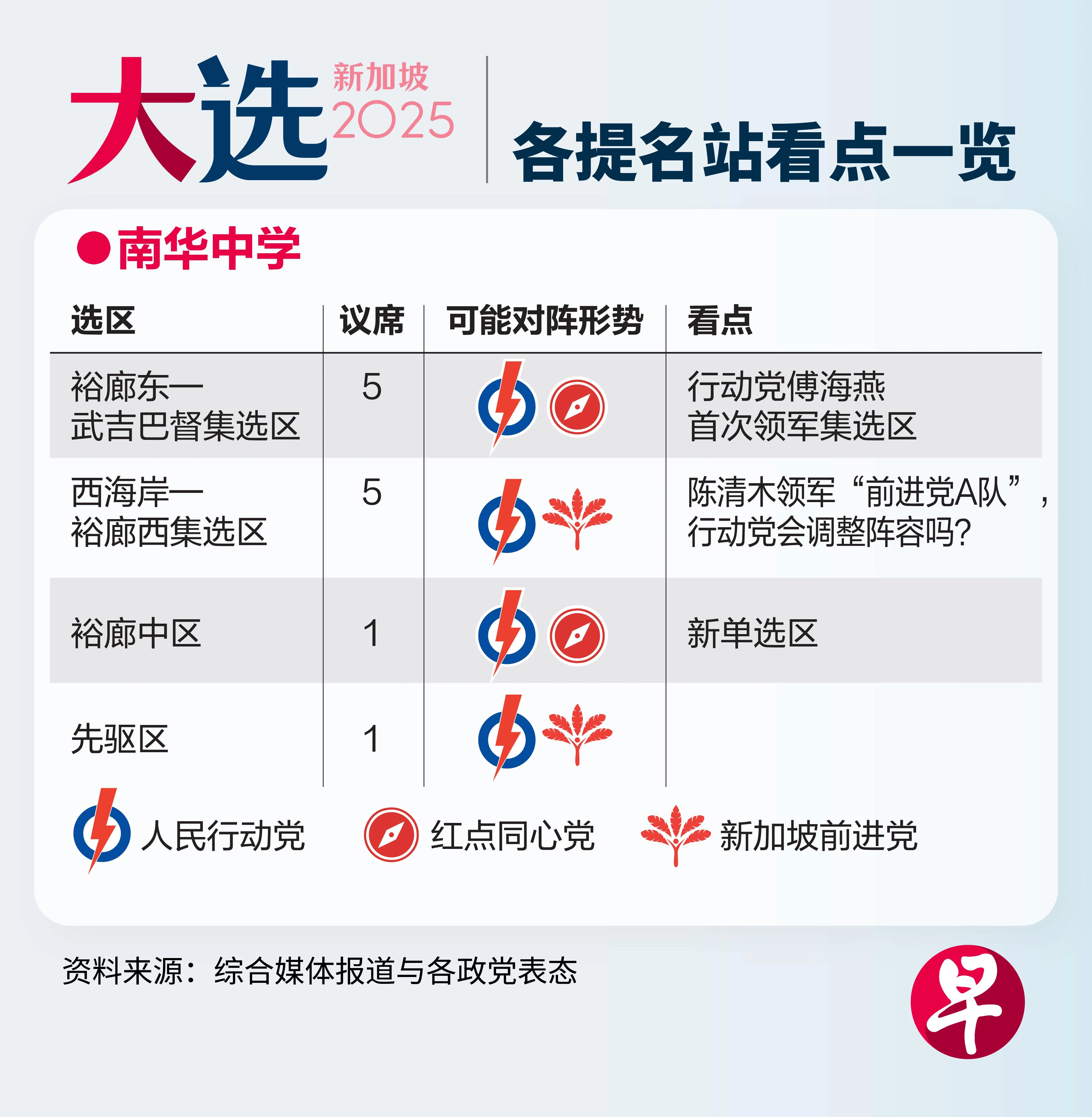 ④南华中学(裕廊东—武吉巴督集选区、西海岸—裕廊西集选区、裕廊中单选区、先驱单选区)