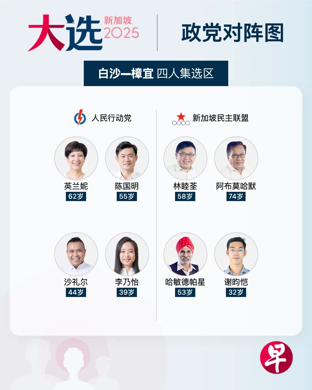 在星期三(4月23日)的提名日后,白沙—樟宜集选区行动党团队确定由英兰妮带领,其他成员包括原白沙—榜鹅集选区议员——总理公署高级政务部长、全国职工总会副秘书长陈国明,以及沙礼尔,还有新人李乃怡(Valerie Lee,39岁)出征。