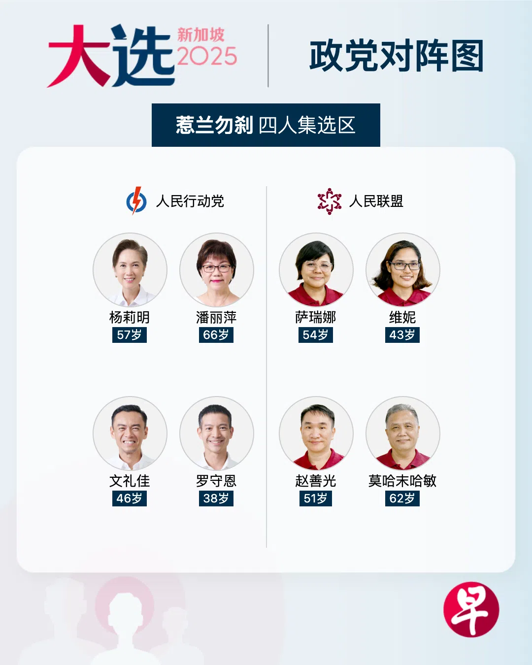 数码发展及新闻部长兼内政部第二部长杨莉明再次领导四人团队,捍卫惹兰勿刹集选区议席,对垒人民联盟团队。杨莉明说,谁在这一区竞选并不重要,团队都会全力以赴,希望选民能继续给予支持。