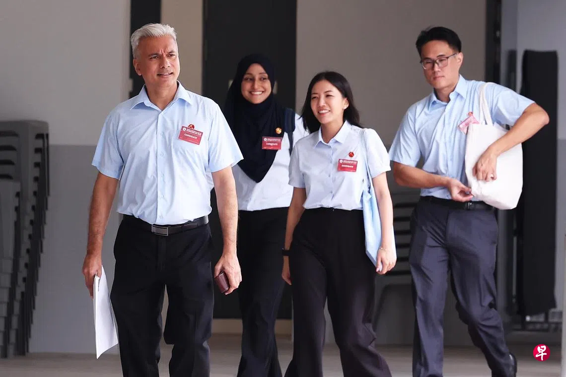 几乎同一时候,原本在蔡厝港集选区领军的副总理兼贸工部长颜金勇出人意表地出现在尤索夫依萨中学,带领着榜鹅团队的白衣人走进提名站。