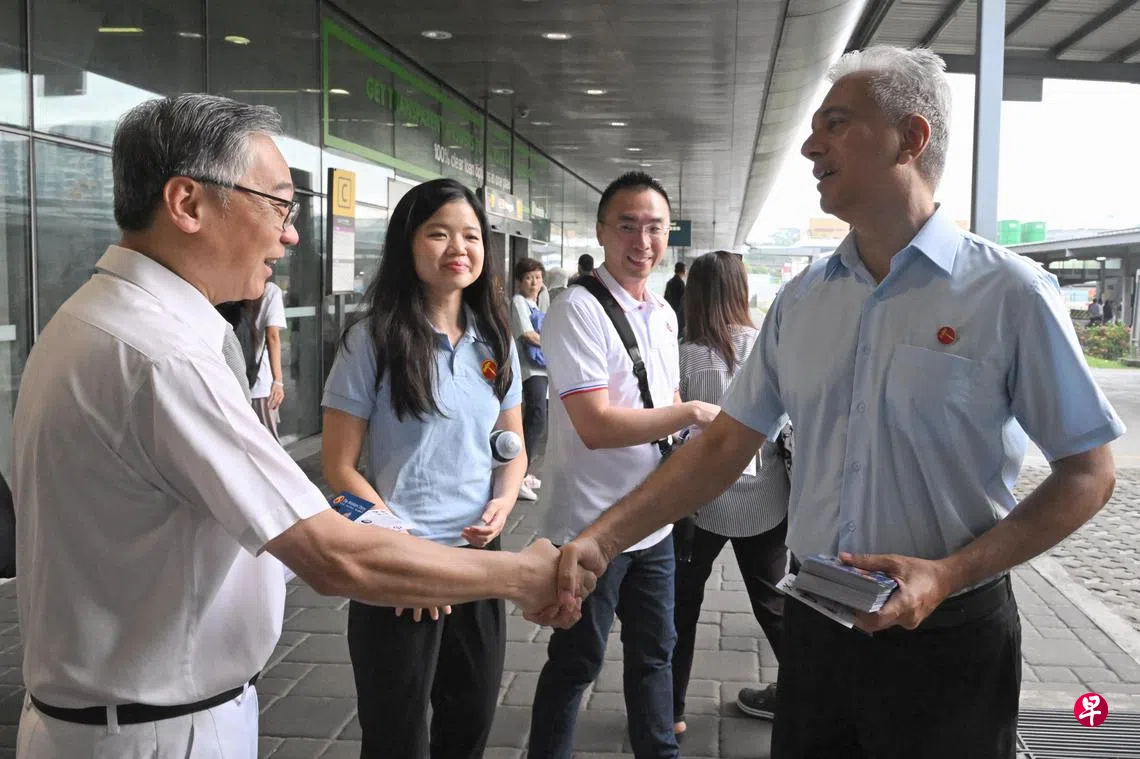 最先抵达人流多的榜鹅巴士转换站的是行动党候选团队。临时被调往东部榜鹅集选区领军的副总理兼贸工部长颜金勇,清晨不到7点,已经和内政部兼社会及家庭发展部政务部长孙雪玲和杨涴淩两名竞选队友,向民众派发“我们的榜鹅镇”传单和连夜印出的候选团队照片小卡。另一名队友—卫生部兼数码发展及新闻部高级政务部长普杰立医生后来加入。