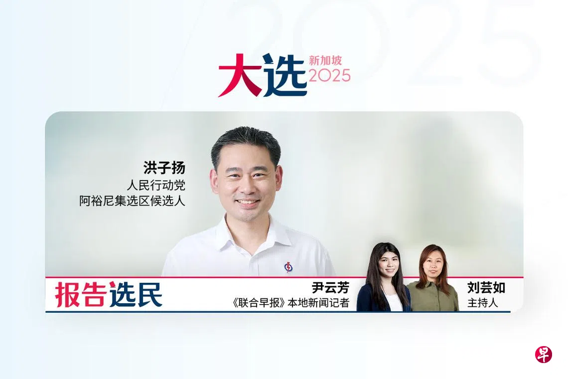 《报告选民》第二集请来人民行动党阿裕尼集选区候选人洪子扬,与《联合早报》本地新闻记者尹云芳以及主持人刘芸如对谈。