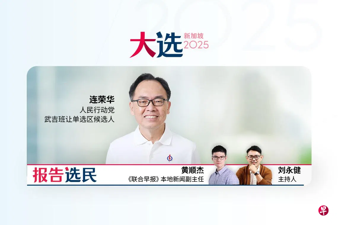 《联合早报》大选特备节目《报告选民》最后一集邀请行动党武吉班让单选区候选人连荣华,与《联合早报》本地新闻副主任黄顺杰和主持人刘永健分享他在区内推行的”一元为定”计划如何协助居民应付生活费挑战。已从鼻咽癌康复的他,为何继续在大选披甲上阵,寻求武吉班让居民的委托?
