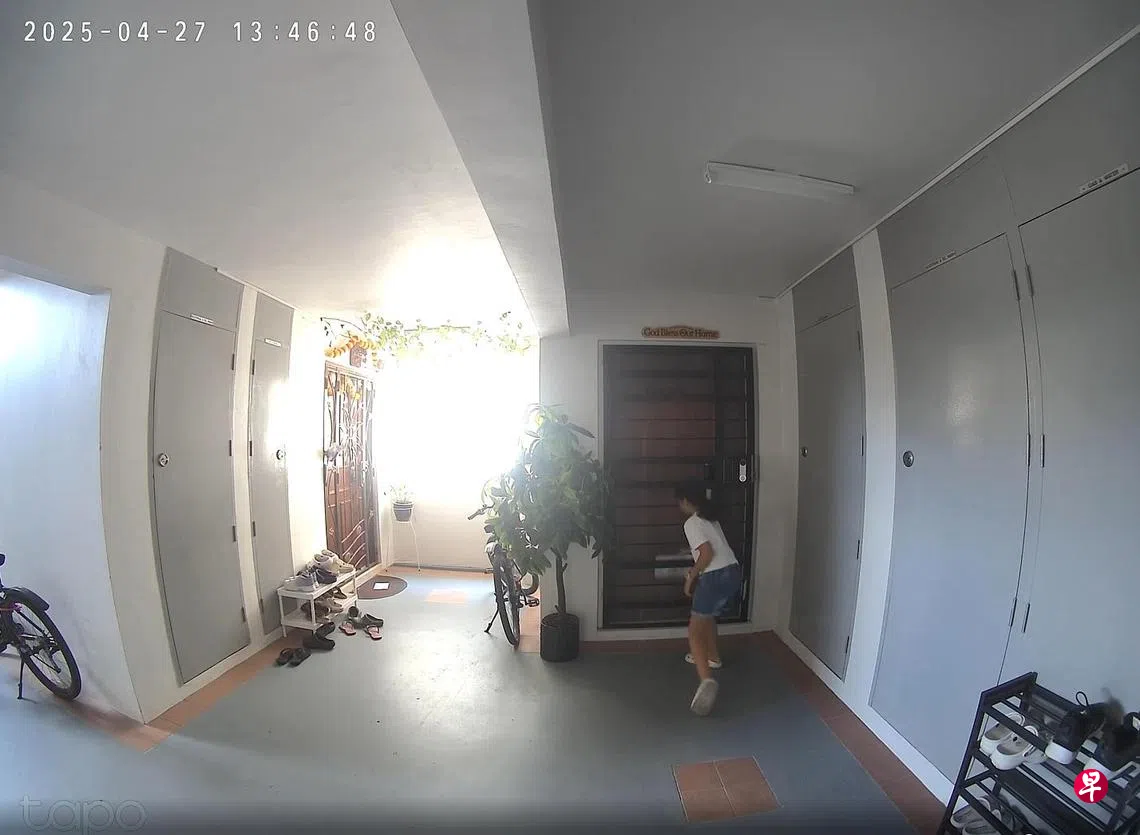 根据该用户上载的一段约20秒的视频,4月27日下午1时46分左右,两名女孩在组屋走廊嬉闹,其中一人手里拿着传单,先后走向两个组屋单位,把竞选传单放进大门内。