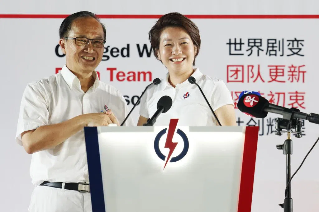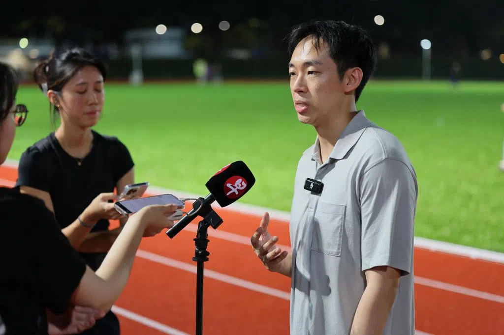 蒙巴登区无党籍候选人陈伟洋(Jeremy Tan,34岁,前商人)星期四(5月1日)在田径之家(Home of Athletics)举行群众大会。