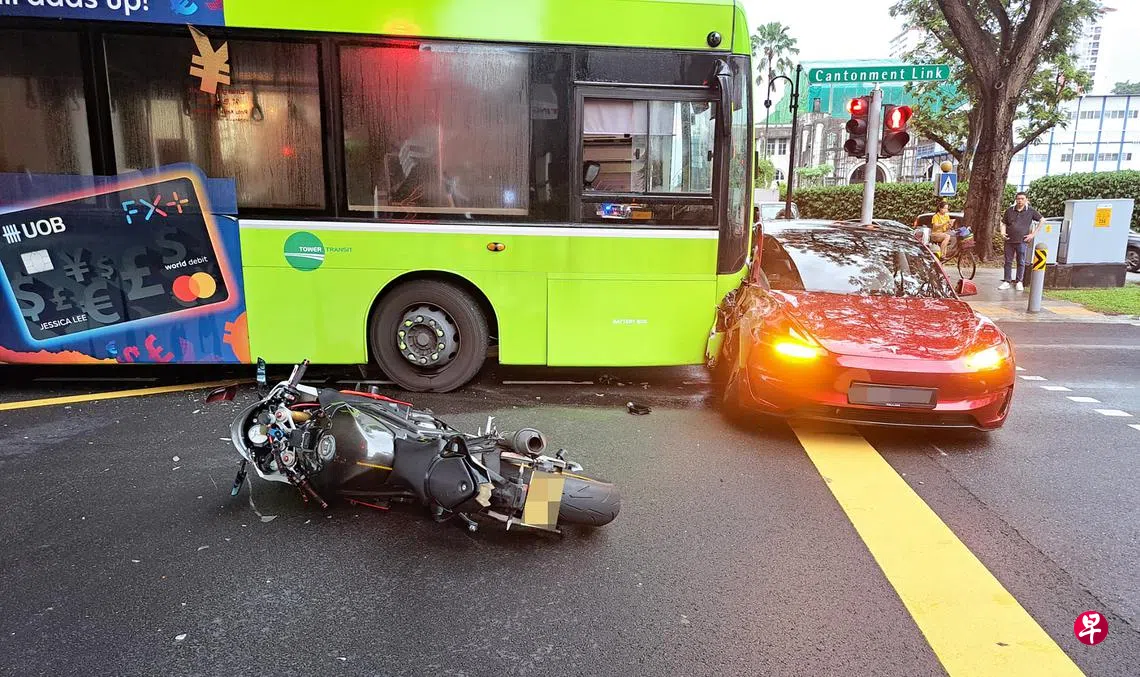 《新明日报》报道,这起事故发生在周三(4月30日)傍晚约6时20分,地点在岌巴路(Keppel Road)和广东民连路(Cantonment Link)的交界处。